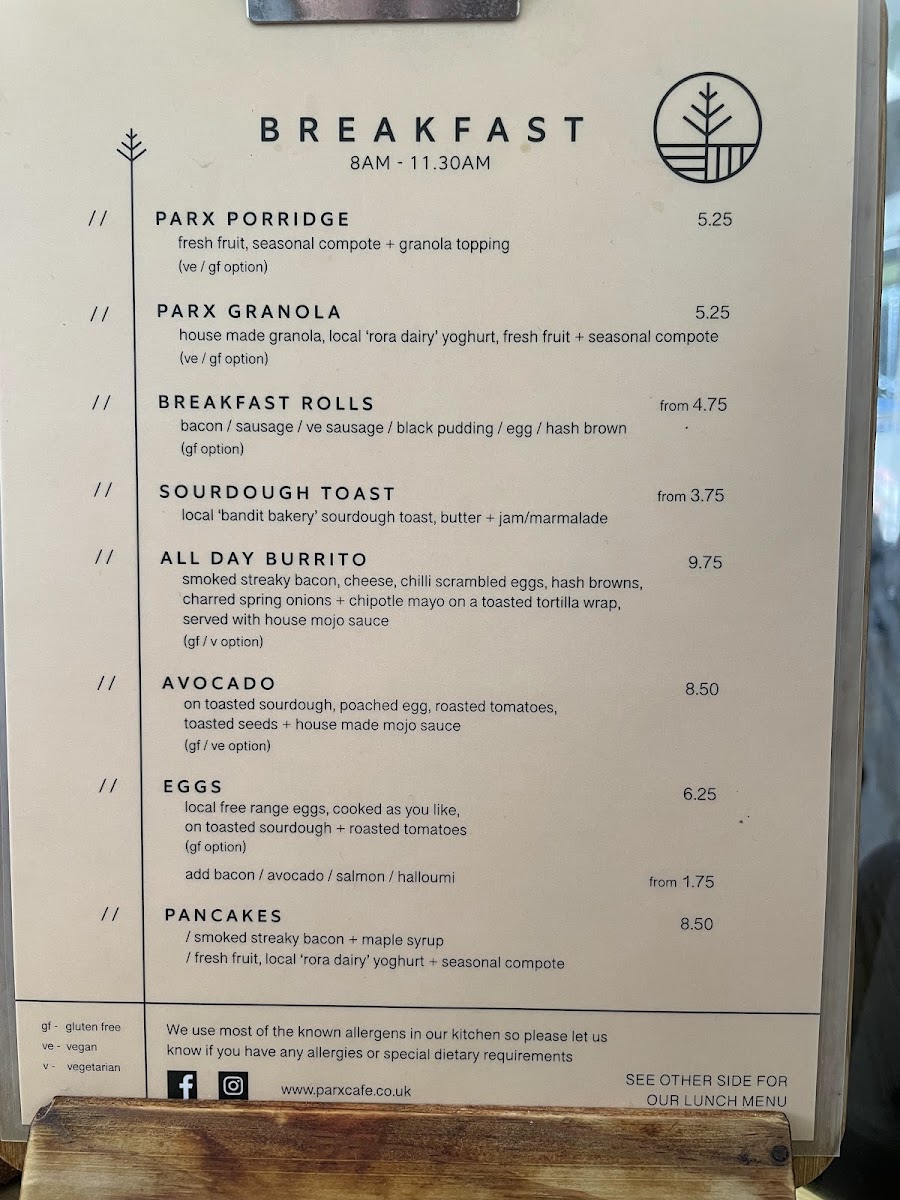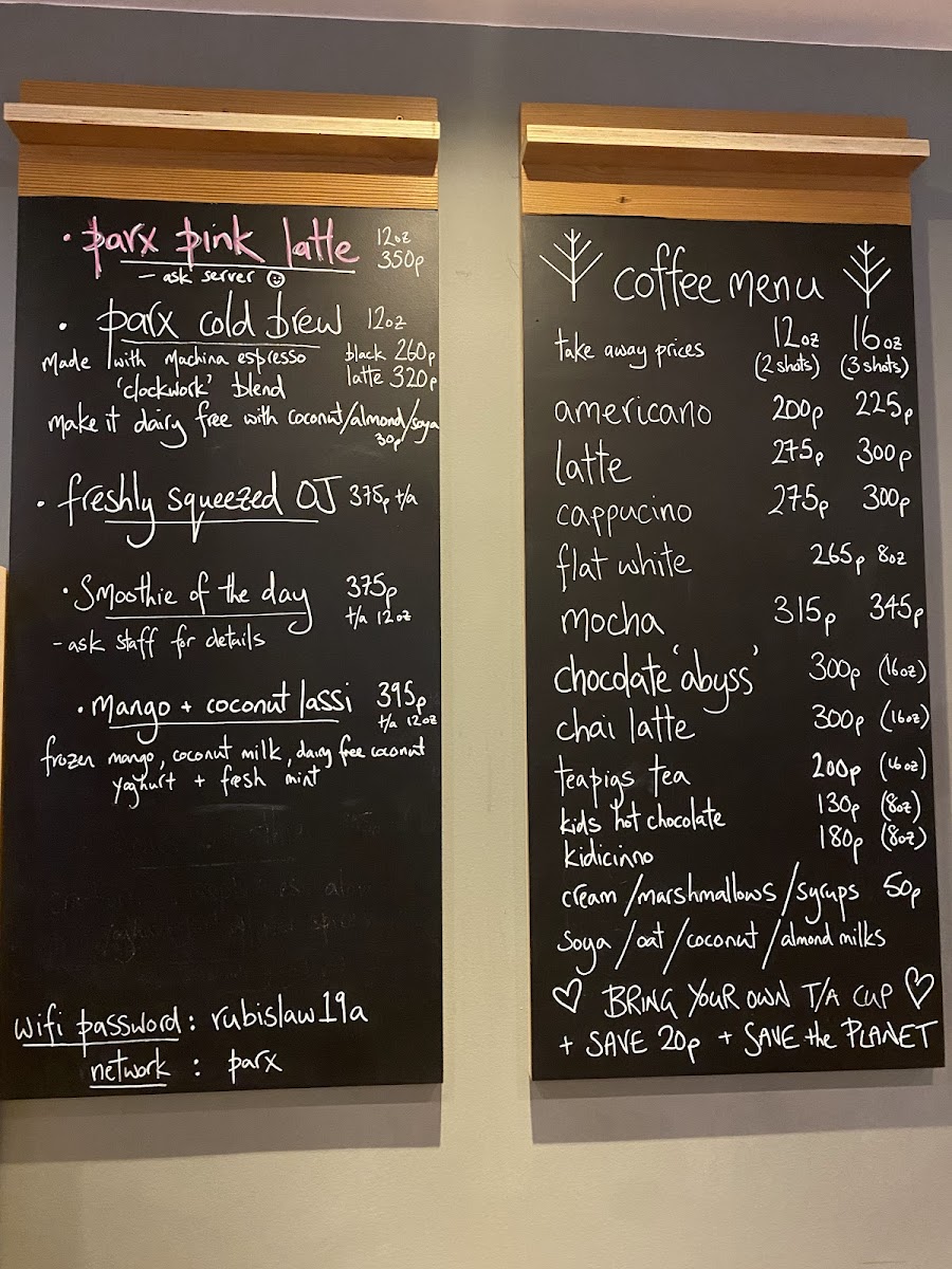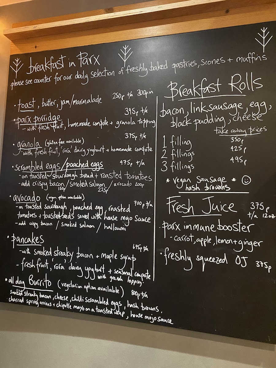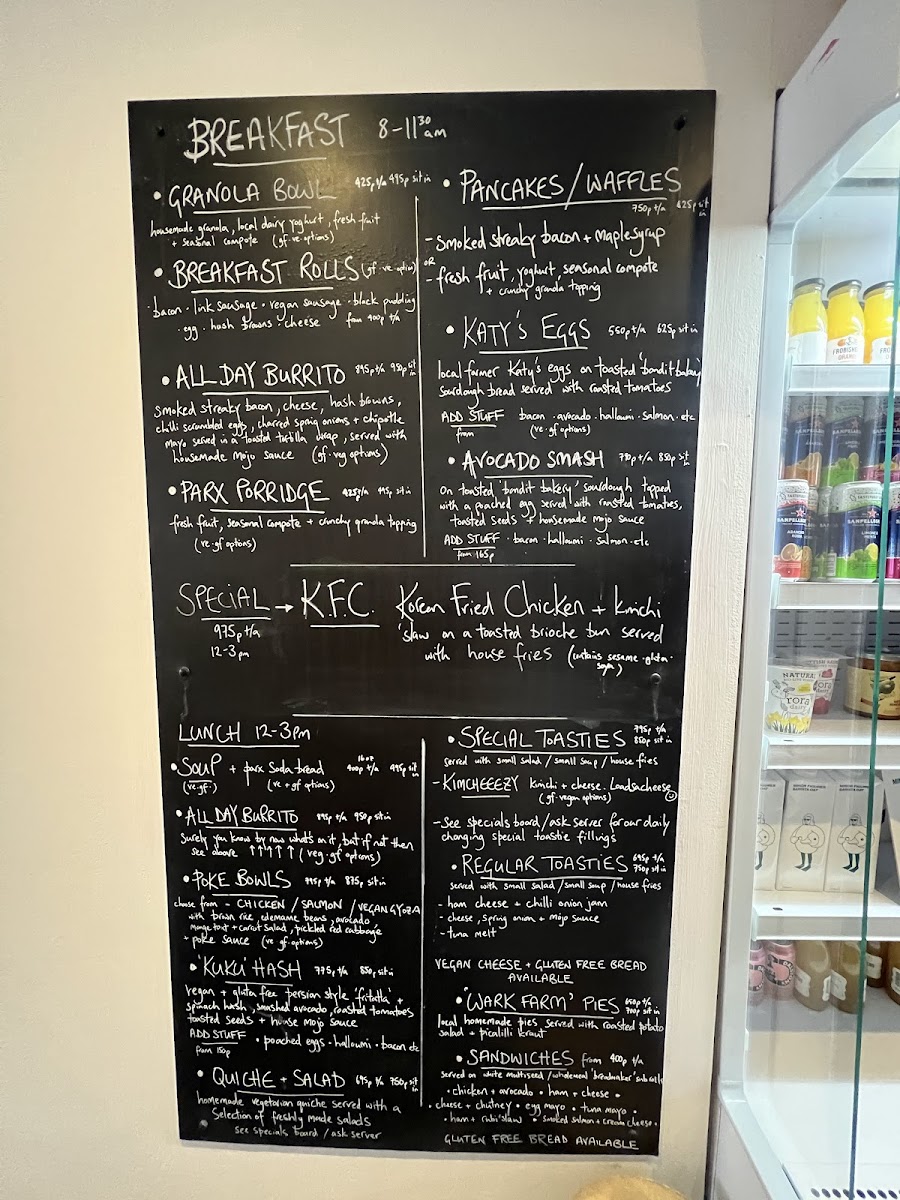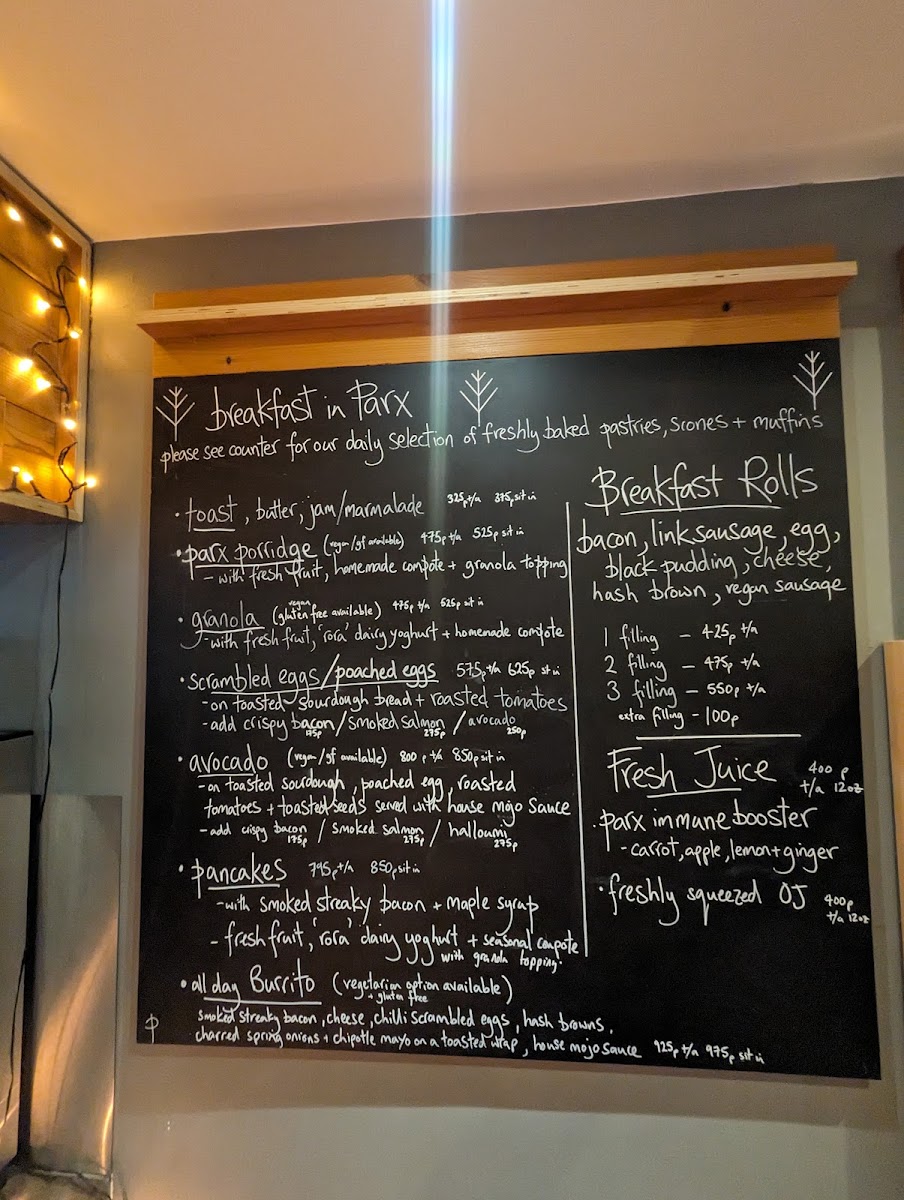 Parx Cafe Menu